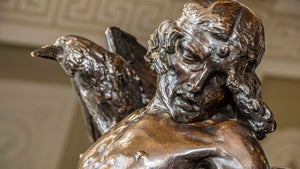 Oliver Shepard's sculpture of the death of Cú Chulainn - killed in battle by his enemy Lugaid - was chosen by Éamon de Valera as the official memorial to the 1916 Easter Rising. At its unveiling at the General Post Office in 1935, de Valera described the work as “a beautiful piece of sculpture, the creation of Irish genius, symbolising the dauntless courage and abiding constancy of our people.”