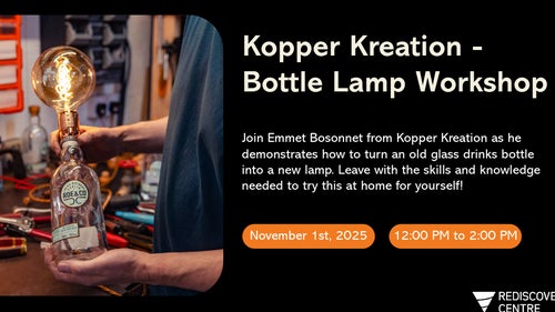 Emmet will demonstrate the whole process from start to finish including the tools needed & techniques leaving you with the skills & knowledge needed to turn your old bottle into a lamp at home. We will also have a raffle on the day and the lucky winner will receive the lamp that's made on the day!