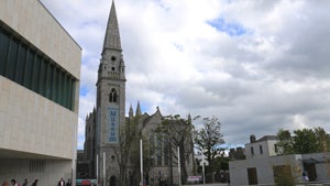 The church spire of the museum (beside the Royal Marine Hotel) is clearly visible from most places in Dun Laoghaire.